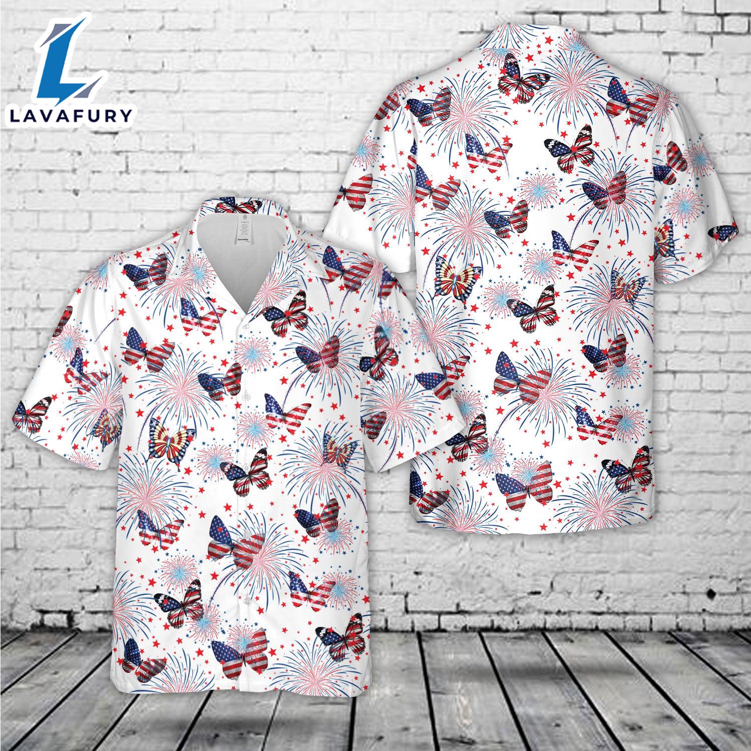 4th of July Butterflies Seamless Hawaiian Shirt 4TH Of July Experience the essence of island life with the Hawaiian Shirt, a vibrant blend of style and comfort. This shirt features lively, tropical prints that evoke the carefree spirit of a beach getaway. Crafted from lightweight, breathable fabric, it offers a relaxed fit and exceptional comfort, perfect for warm weather. The classic button-down design and short sleeves provide a laid-back yet polished look, making it ideal for casual outings, beach days, or summer gatherings. Infuse your wardrobe with a touch of tropical flair and effortless charm with this essential Hawaiian Shirt.