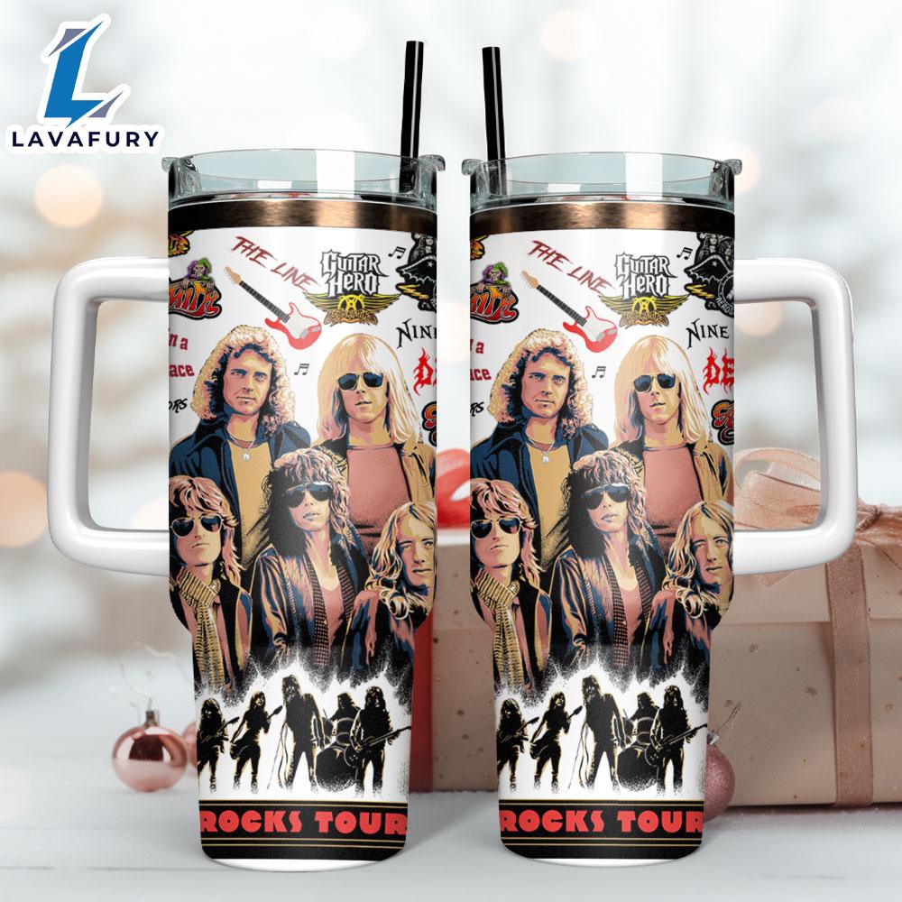 Aerosmith Musicosmith Music Custom Stanley Quencher 40oz Stainless Steel Tumbler The Stanley Tumbler 40oz is a versatile and durable companion designed to keep your beverages at the perfect temperature, whether on the go or enjoying a day outdoors. Crafted from high-grade stainless steel, this tumbler boasts exceptional insulation capabilities, keeping your drinks hot or cold for hours. Its generous 40-ounce capacity is perfect for long trips or sharing with friends. The design features a spill-resistant lid and a comfortable handle, making it easy to carry and use. With its rugged construction and sleek appearance, the Stanley Tumbler 40oz is the ideal choice for those who demand both functionality and style in their drinkware.