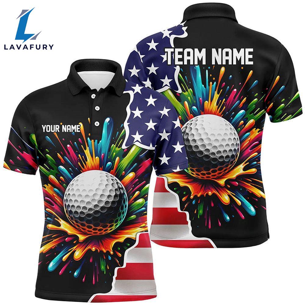 American Flag Black Mens Golf Polo Shirts Custom Colorful Paint , Patriot Golf Tops Gift Summer