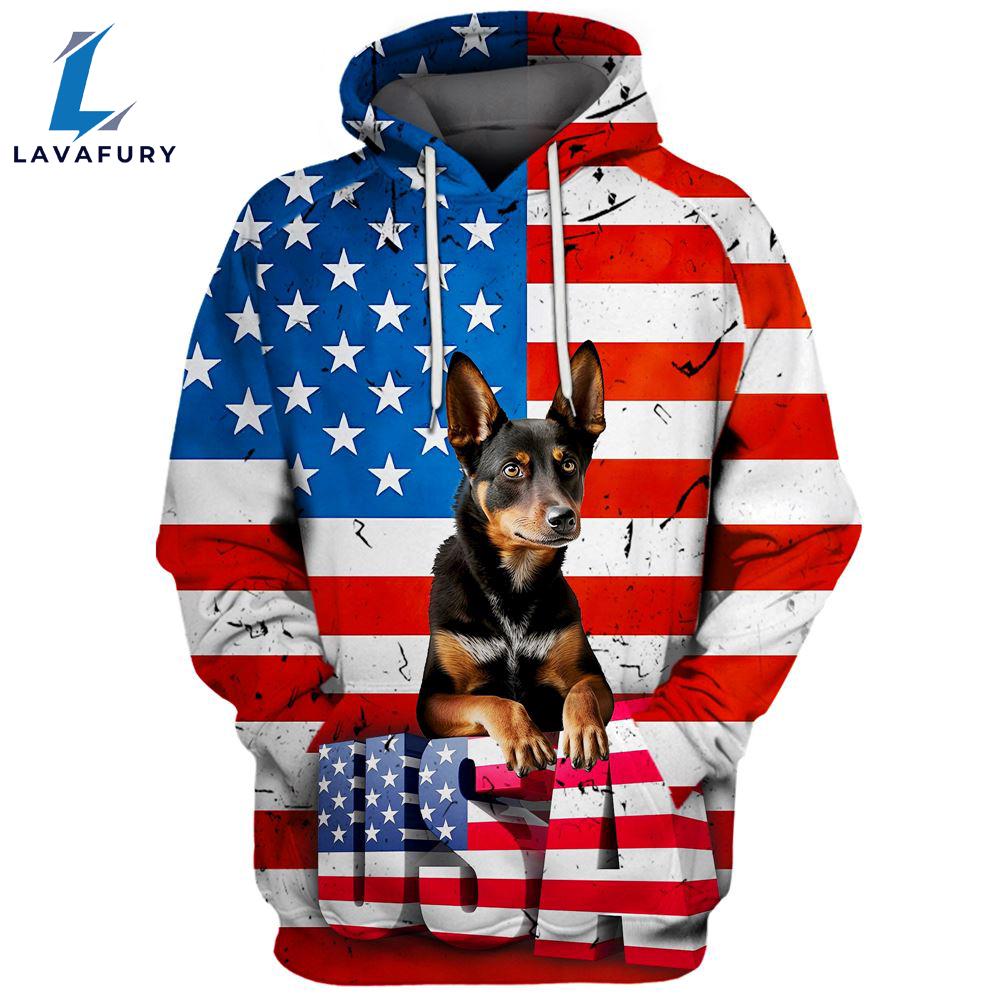 Product details: Australian Kelpie Dog 3D Face Graphic Premium America Flag Hoodie For Lover Dogs