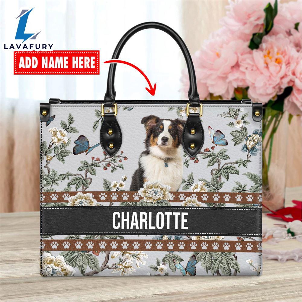 Photos Of Australian Shepherd Dog Bior Leather Handbag With Flowers And Butterfly Love Your Pet
