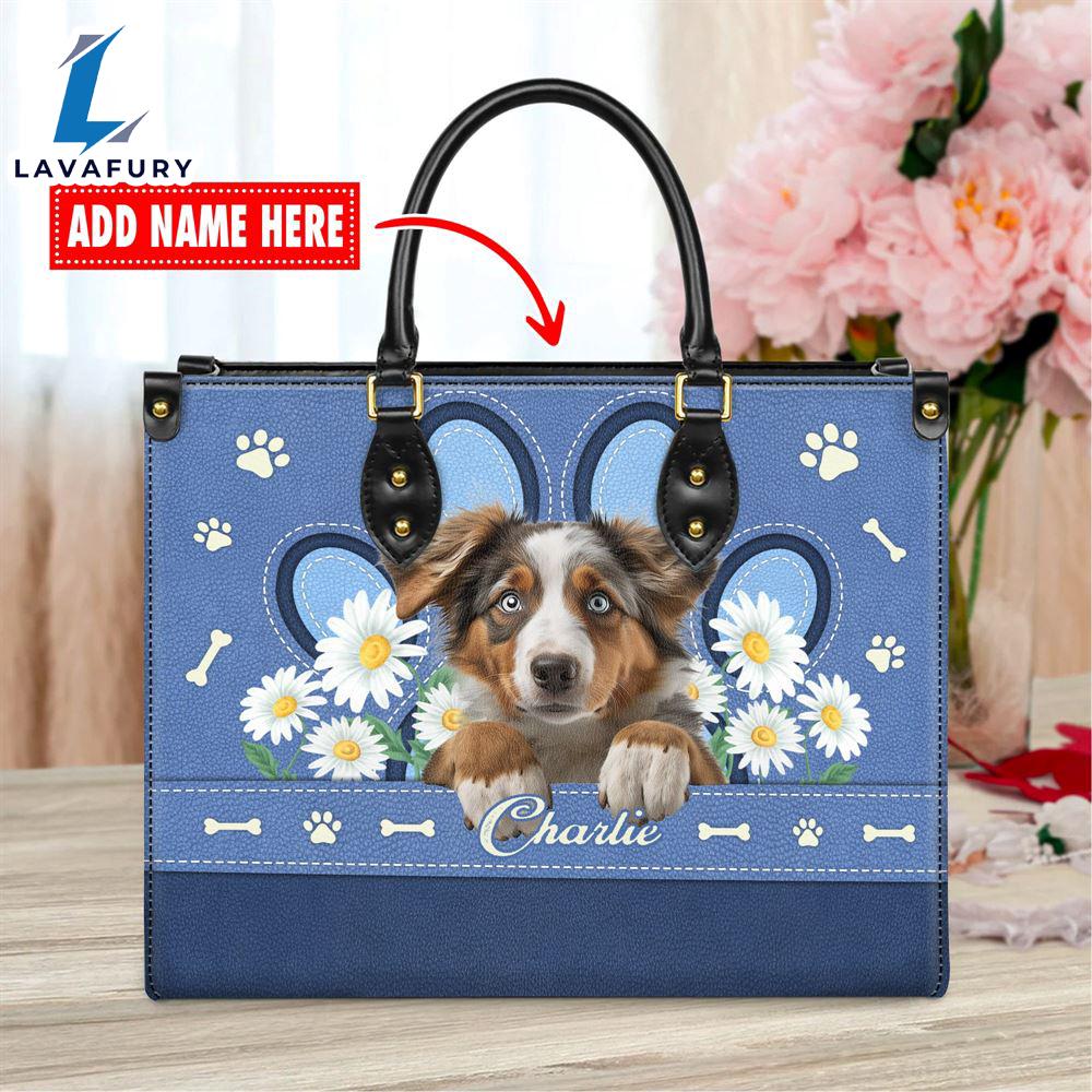Australian Shepherd Dog Lover Leather Bag With Daisy Flowers Love Your Pet