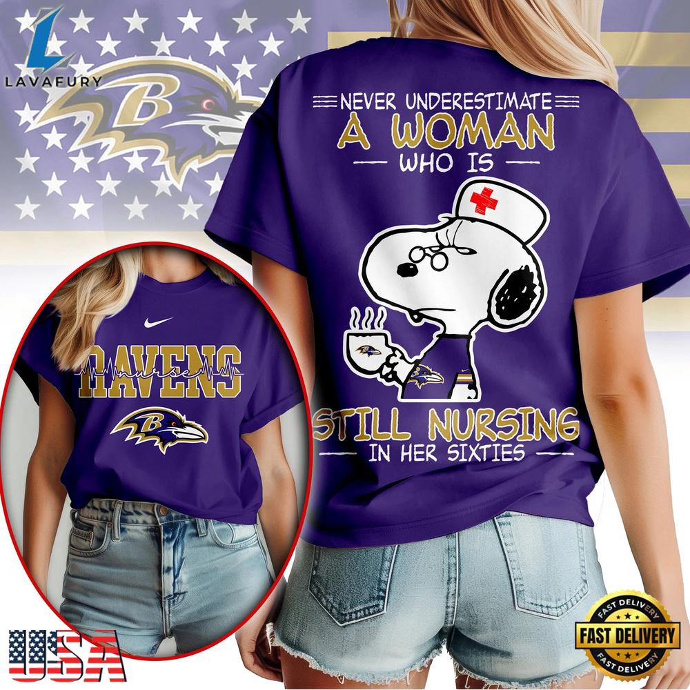 Product details: Baltimore Ravens NFL Snoopy Never Underestimate A Nurse Women Shirt