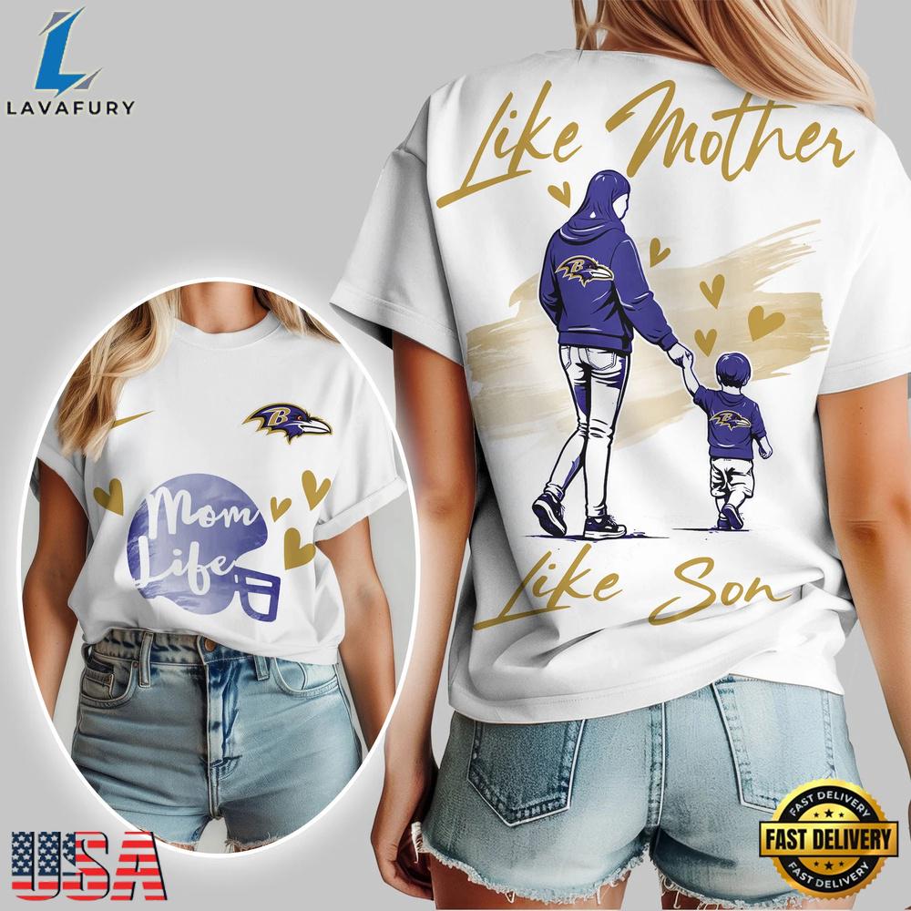 Baltimore Ravens Premium NFL Like Mother Like Son T-Shirt The 3D shirt features an innovative design that combines cutting-edge technology with style. Its three-dimensional patterns create a dynamic and eye-catching look, making it stand out in any wardrobe. Made from high-quality, flexible fabric, this shirt ensures comfort and durability while allowing for a visually striking effect that plays with light and shadow.