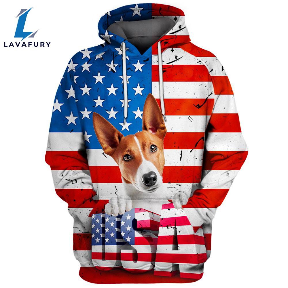 Product details: Basenji Dog 3D Face Graphic Premium America Flag Hoodie For Lover Dogs