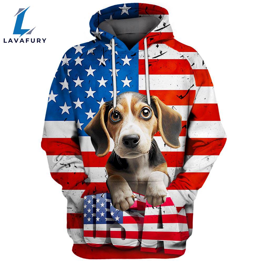 Product details: Beagle Dog 3 3D Face Graphic Premium America Flag Hoodie For Lover Dogs