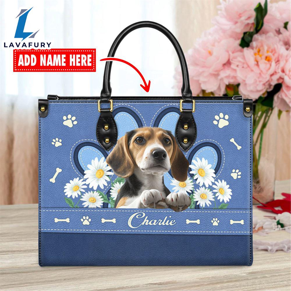 Beagle Dog Lover Leather Bag With Daisy Flowers Love Your Pet