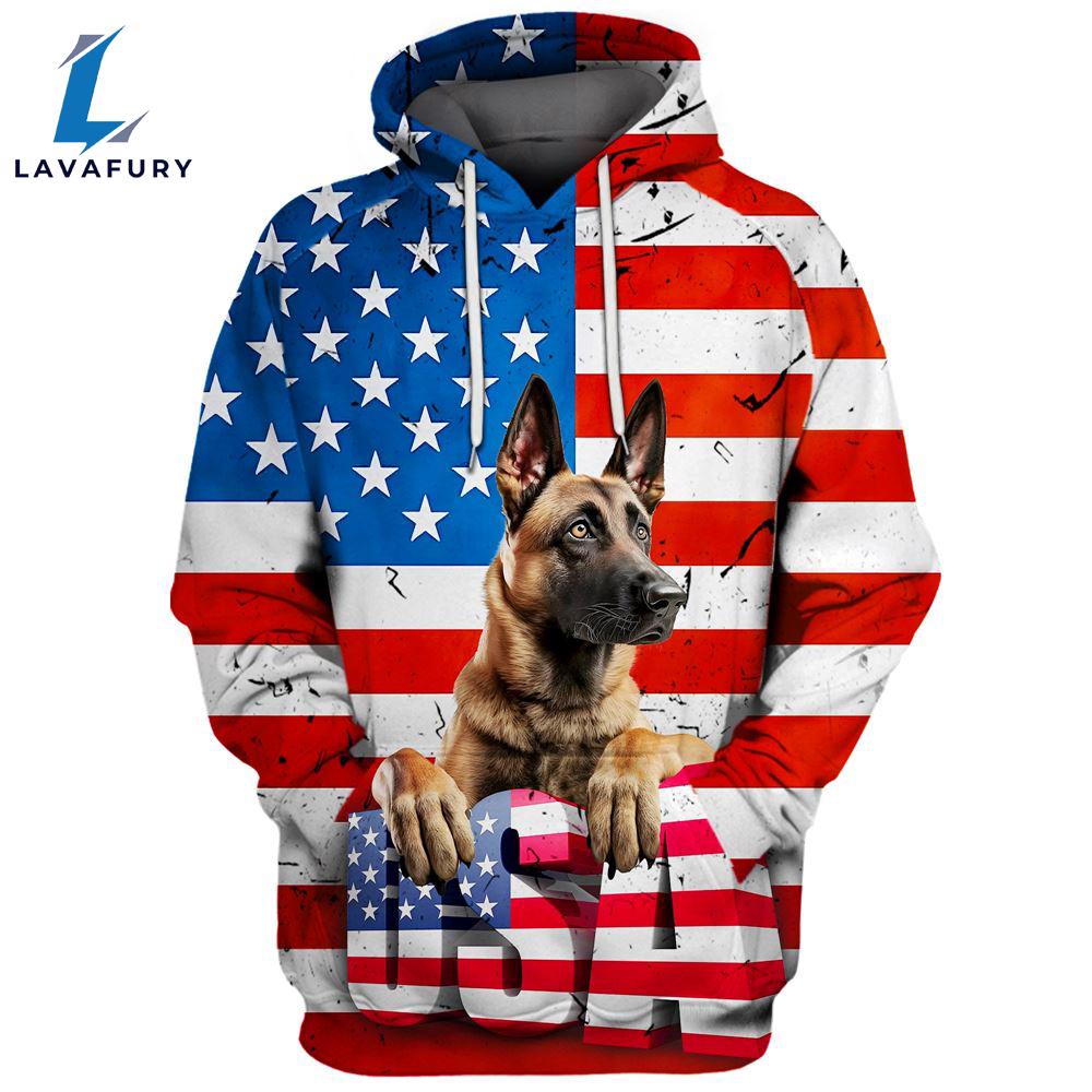 Product details: Belgian Malinois Dog 3D Face Graphic Premium America Flag Hoodie For Lover Dogs