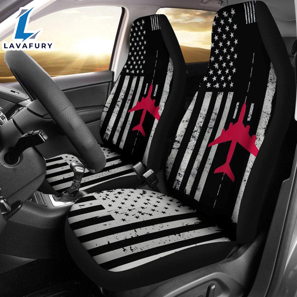 Best Us Flag Airport Runway! Airplane Pilot Premium Custom Car Seat Covers Decor Protector Decor Car