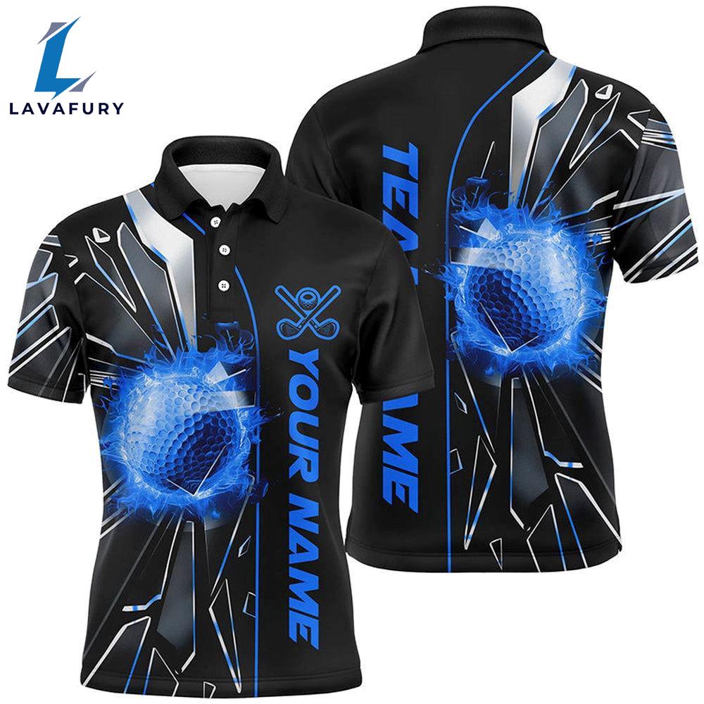 Photos Of Black And Blue Fire Golf Ball Broken Glass Custom Mens Golf Polo Shirts Gift Summer