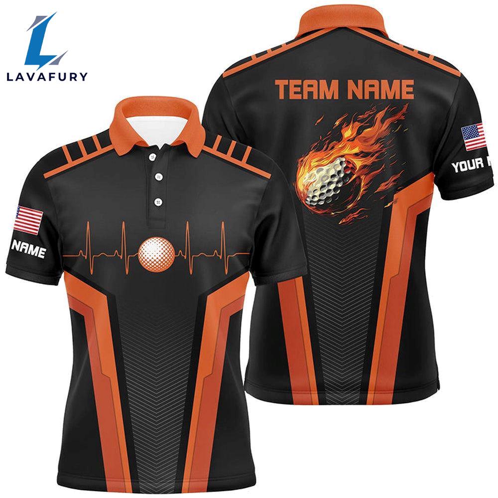 Black And Orange Mens Golf Polo Shirt Custom Flame Golf Ball Team Golf Tops Gift Summer