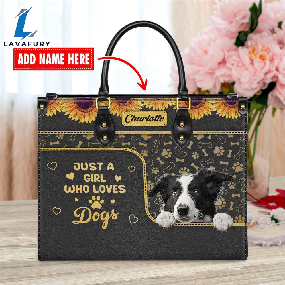 Border Collie Dog Just A Girl Who Loves Dogs Leather Handbag Love Your Pet