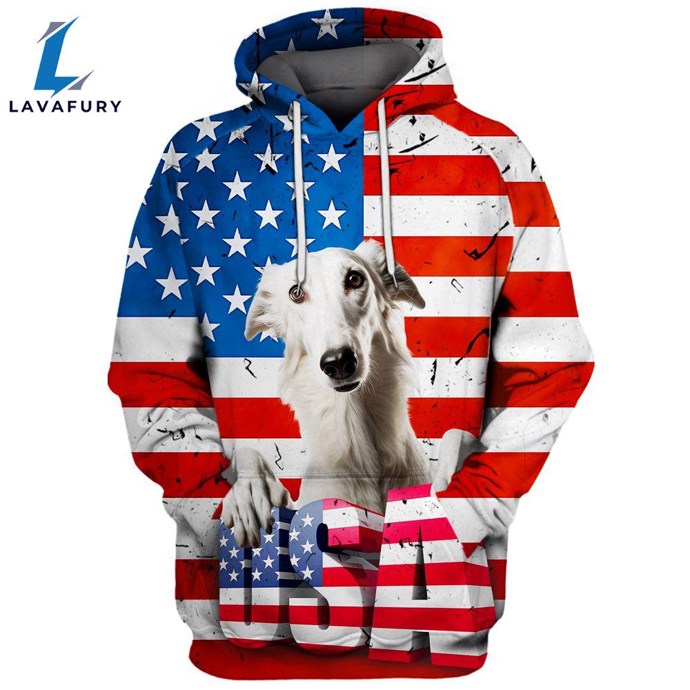 Product details: Borzoi Dog 3D Face Graphic Premium America Flag Hoodie For Lover Dogs
