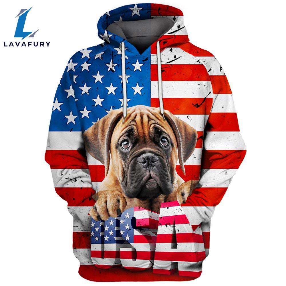 Bullmastiff Dog 3D Face Graphic Premium America Flag Hoodie For Lover Dogs The 3D shirt features an innovative design that combines cutting-edge technology with style. Its three-dimensional patterns create a dynamic and eye-catching look, making it stand out in any wardrobe. Made from high-quality, flexible fabric, this shirt ensures comfort and durability while allowing for a visually striking effect that plays with light and shadow.