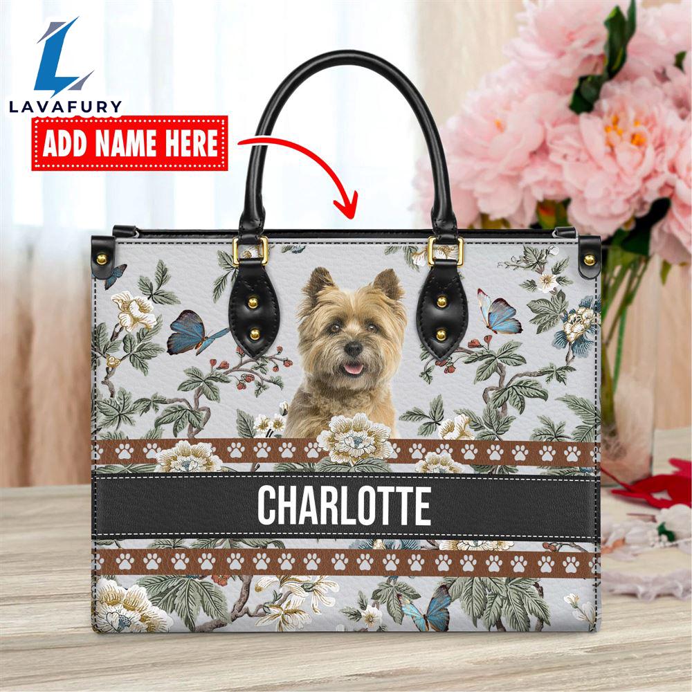 Photos Of Cairn Terrier Dog Bior Leather Handbag With Flowers And Butterfly Love Your Pet