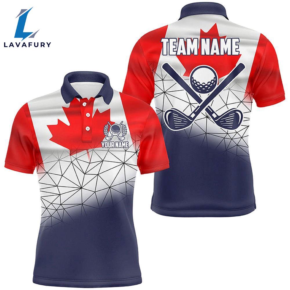 Canadian Flag Golf Clubs Navy Geometric Pattern Men Golf Polo Shirts Custom Patriotic Golf Outfits Men, Custom Gift Summer