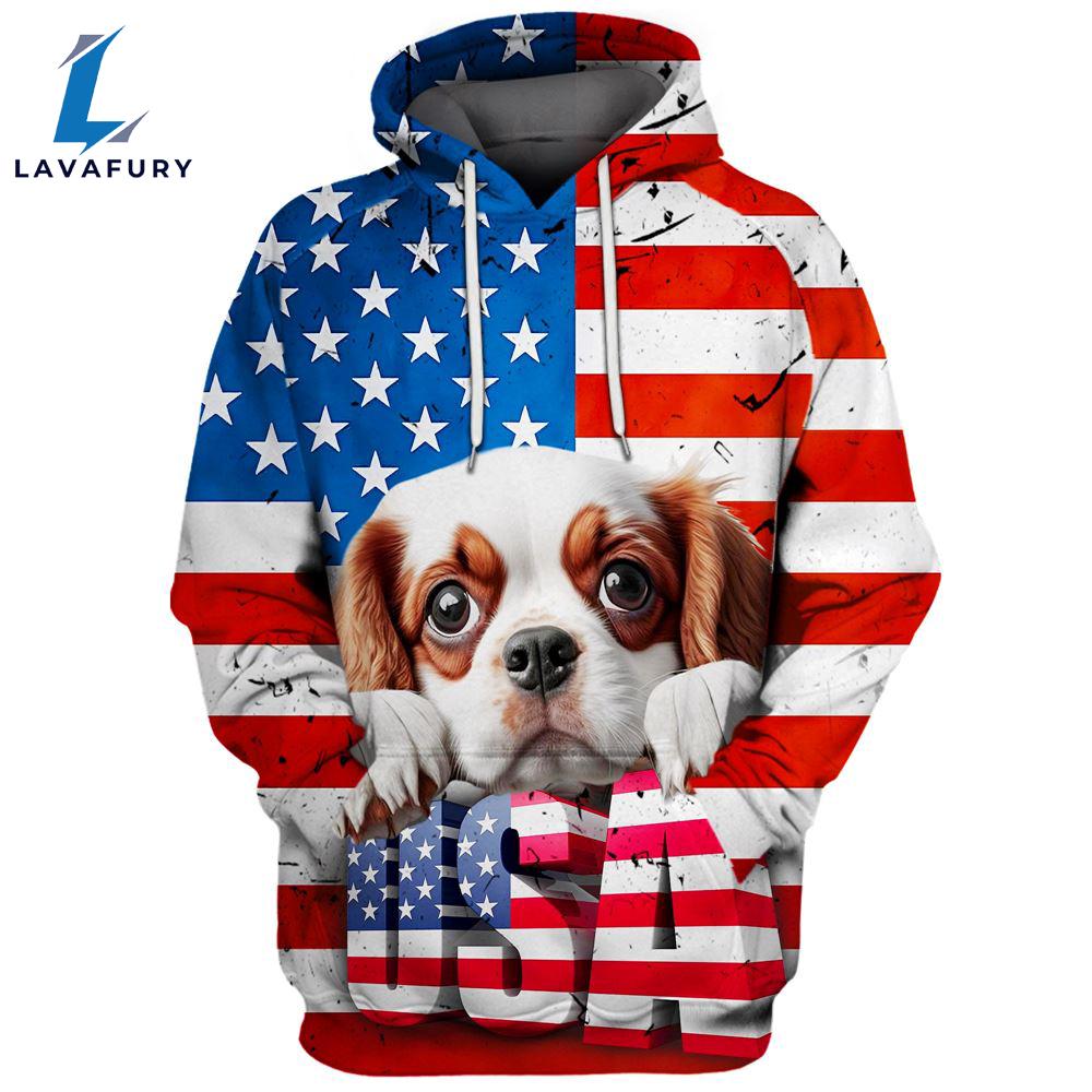Product details: Cavalier King Charles Spaniel Dog 4 3D Face Graphic Premium America Flag Hoodie For Lover Dogs