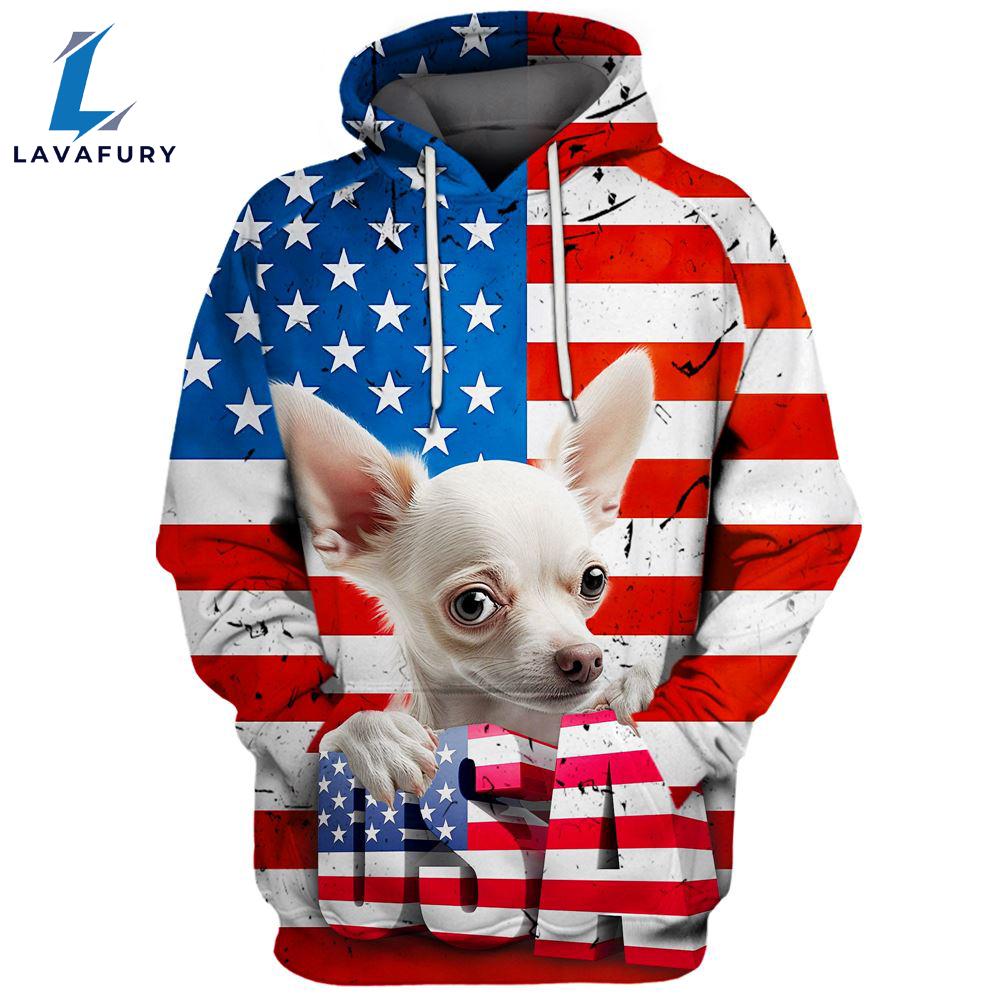 Product details: Chihuahua Dog 3 3D Face Graphic Premium America Flag Hoodie For Lover Dogs