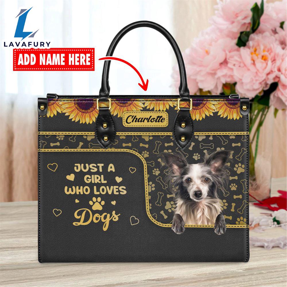 Product Details Chinese Creasted Dog Just A Girl Who Loves Dogs Leather Handbag Love Your Pet