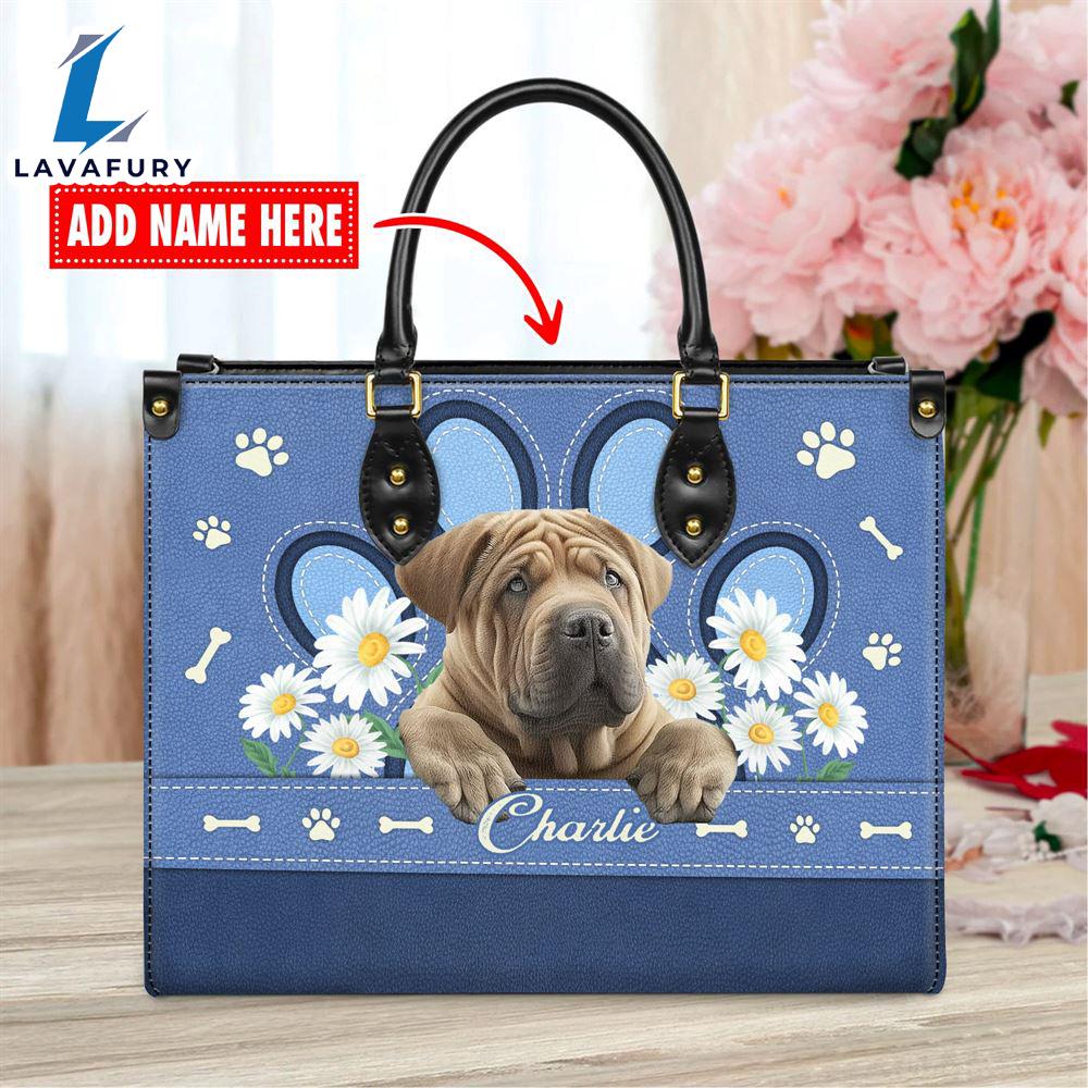 Chinese Shar-Pei Dog Lover Leather Bag With Daisy Flowers Love Your Pet