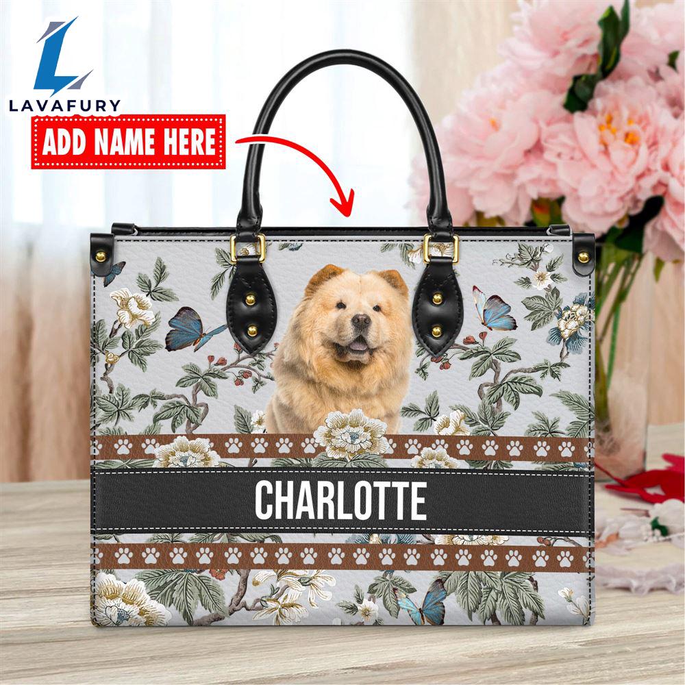 Photos Of Chow Chow Dog Bior Leather Handbag With Flowers And Butterfly Love Your Pet