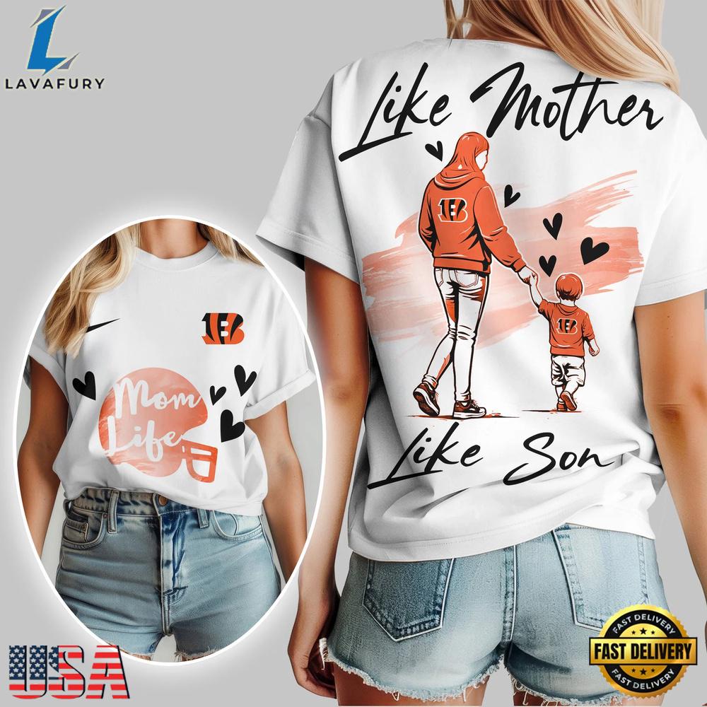 Cincinnati Bengals Premium NFL Like Mother Like Son T-Shirt The 3D shirt features an innovative design that combines cutting-edge technology with style. Its three-dimensional patterns create a dynamic and eye-catching look, making it stand out in any wardrobe. Made from high-quality, flexible fabric, this shirt ensures comfort and durability while allowing for a visually striking effect that plays with light and shadow.