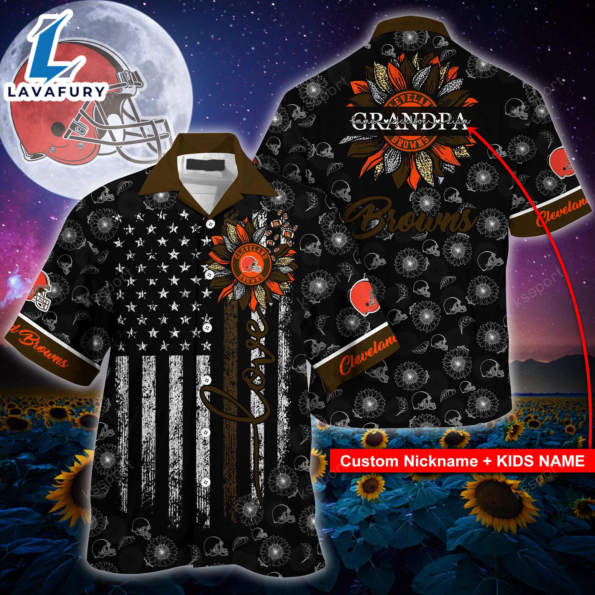 Cleveland Browns NFL-Hawaii Shirt Sunflower Custom Your Nickname,Kids Name Best Gift For Mother Day,Father Day Very Comfortable
