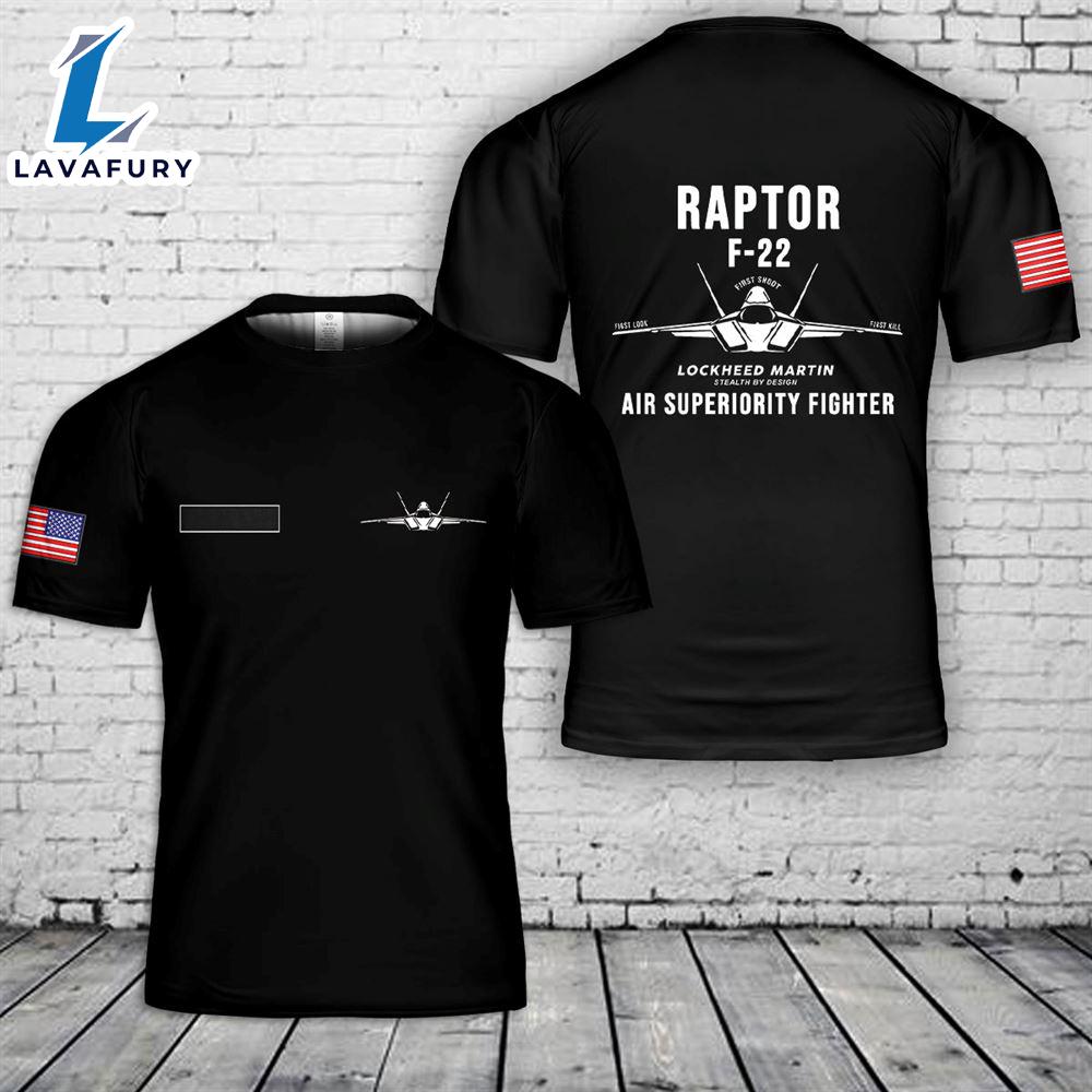 Product details: Custom Custom Name US Air Force F-22 Raptor Stealth Air Superiority Fighter T-Shirt 3D 4th Of July