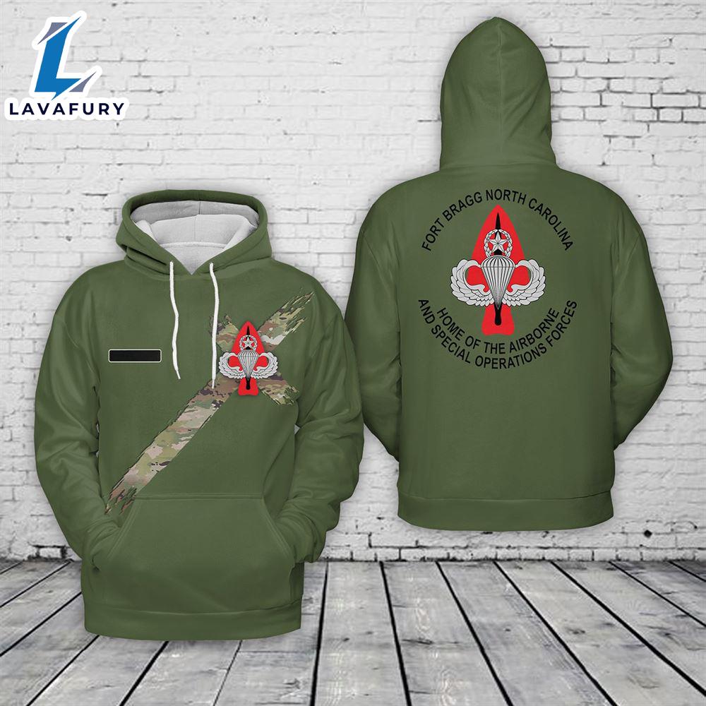 Custom Name Fort Bragg Home Of The Airborne And Special Operations Forces Hoodie 3D 4th Of July