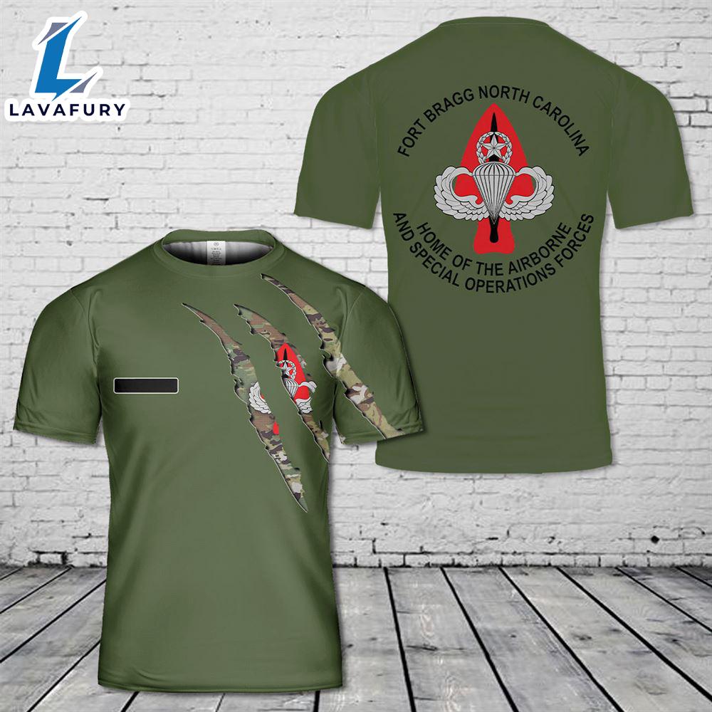 Product details: Custom Name Fort Bragg Home Of The Airborne And Special Operations Forces T-Shirt 3D 4th Of July