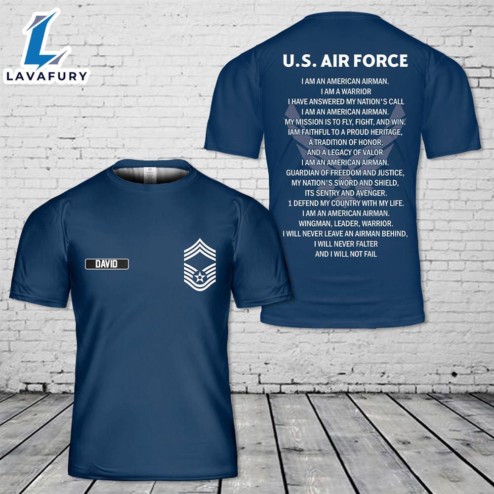 Custom Name & Insignia US Air Force 3D T-Shirt 4th Of July The 3D shirt features an innovative design that combines cutting-edge technology with style. Its three-dimensional patterns create a dynamic and eye-catching look, making it stand out in any wardrobe. Made from high-quality, flexible fabric, this shirt ensures comfort and durability while allowing for a visually striking effect that plays with light and shadow.