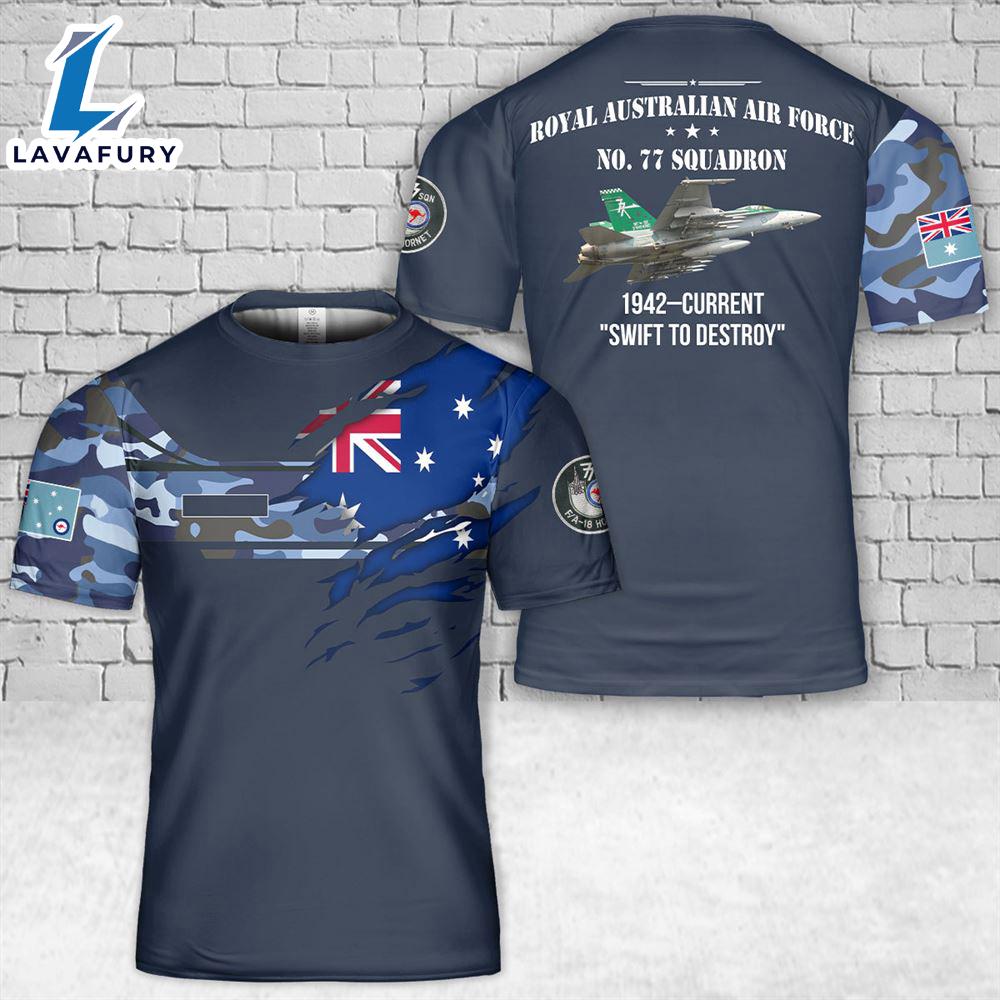 Custom Name Royal Australian Air Force FA-18A Hornet A21-39 No. 77 Squadron T-Shirt 3D 4th Of July