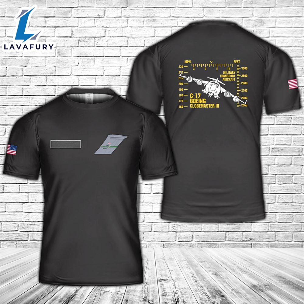Custom Name US Air Force C-17 Globemaster III Military Transport Aircraft – McChord AFB, Washington T-Shirt 3D 4th Of July