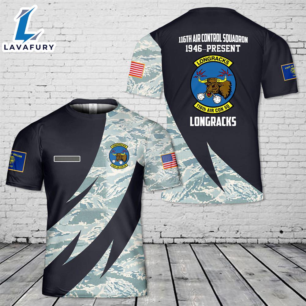 Custom Name US Air Force Oregon Air National Guard, 116th Air Control Squadron T-Shirt 3D 4th Of July The 3D shirt features an innovative design that combines cutting-edge technology with style. Its three-dimensional patterns create a dynamic and eye-catching look, making it stand out in any wardrobe. Made from high-quality, flexible fabric, this shirt ensures comfort and durability while allowing for a visually striking effect that plays with light and shadow.