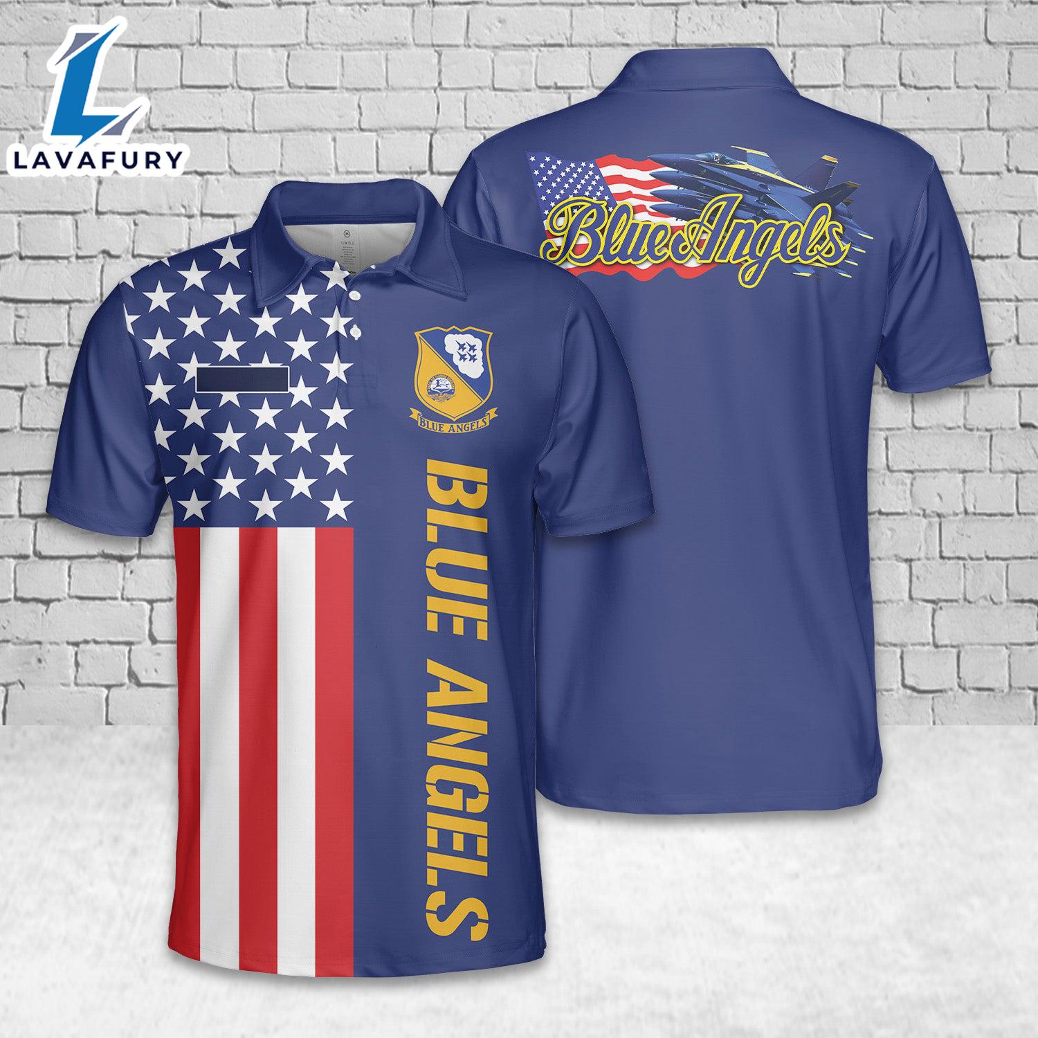 Custom Name US Navy Blue Angels, 4th Of July Polo Shirt Gift Veteran Day