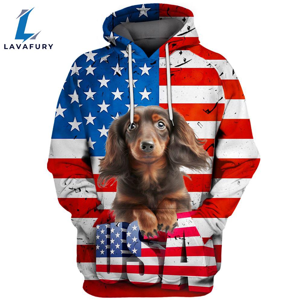 Photos Of Dachshund Dog 10 3D Face Graphic Premium America Flag Hoodie For Lover Dogs