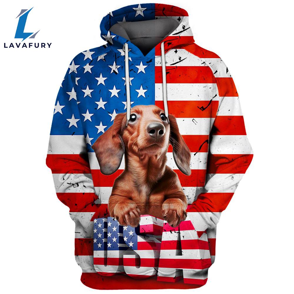 Dachshund Dog 12 3D Face Graphic Premium America Flag Hoodie For Lover Dogs The 3D shirt features an innovative design that combines cutting-edge technology with style. Its three-dimensional patterns create a dynamic and eye-catching look, making it stand out in any wardrobe. Made from high-quality, flexible fabric, this shirt ensures comfort and durability while allowing for a visually striking effect that plays with light and shadow.
