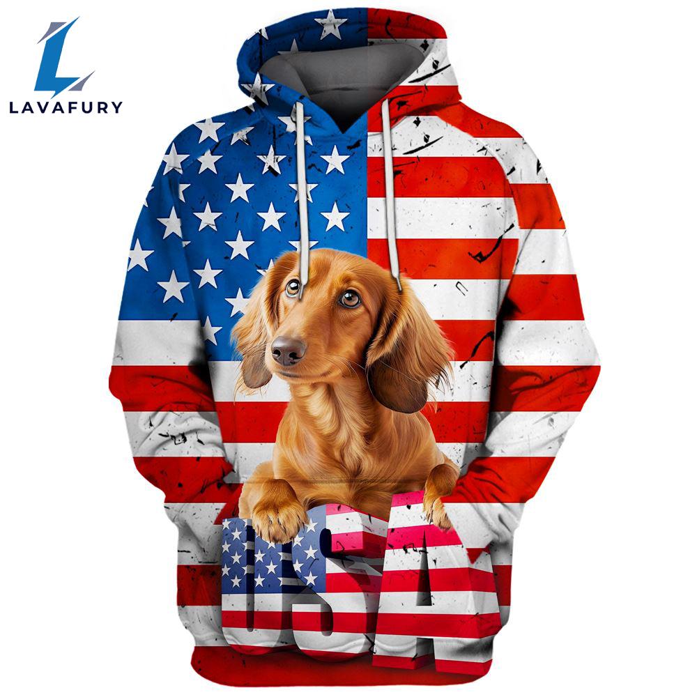 Dachshund Dog 14 3D Face Graphic Premium America Flag Hoodie For Lover Dogs The 3D shirt features an innovative design that combines cutting-edge technology with style. Its three-dimensional patterns create a dynamic and eye-catching look, making it stand out in any wardrobe. Made from high-quality, flexible fabric, this shirt ensures comfort and durability while allowing for a visually striking effect that plays with light and shadow.