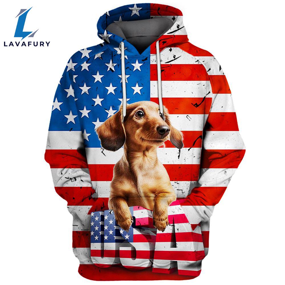 Dachshund Dog 9 3D Face Graphic Premium America Flag Hoodie For Lover Dogs The 3D shirt features an innovative design that combines cutting-edge technology with style. Its three-dimensional patterns create a dynamic and eye-catching look, making it stand out in any wardrobe. Made from high-quality, flexible fabric, this shirt ensures comfort and durability while allowing for a visually striking effect that plays with light and shadow.