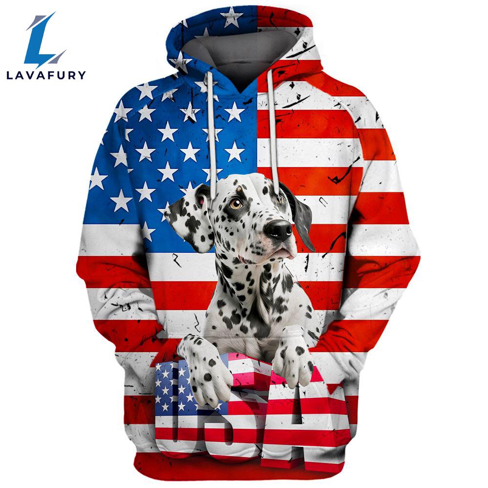 Dalmatian Dog 3D Face Graphic Premium America Flag Hoodie For Lover Dogs The 3D shirt features an innovative design that combines cutting-edge technology with style. Its three-dimensional patterns create a dynamic and eye-catching look, making it stand out in any wardrobe. Made from high-quality, flexible fabric, this shirt ensures comfort and durability while allowing for a visually striking effect that plays with light and shadow.