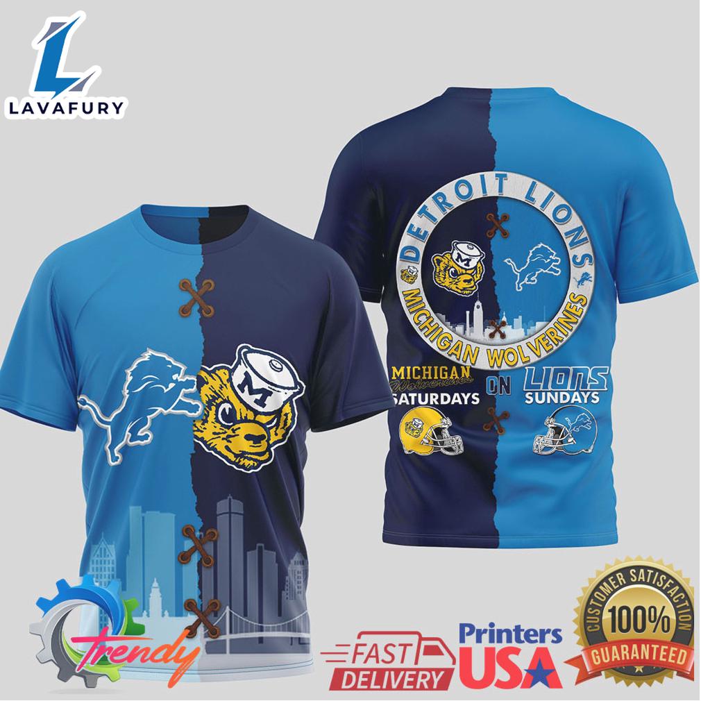 Detroit Lions Michigan Wolverines Split Design Saturdays Sundays Shirt For Man And Women