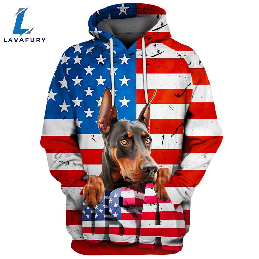 Doberman Pinscher Dog 3D Face Graphic Premium America Flag Hoodie For Lover Dogs The 3D shirt features an innovative design that combines cutting-edge technology with style. Its three-dimensional patterns create a dynamic and eye-catching look, making it stand out in any wardrobe. Made from high-quality, flexible fabric, this shirt ensures comfort and durability while allowing for a visually striking effect that plays with light and shadow.
