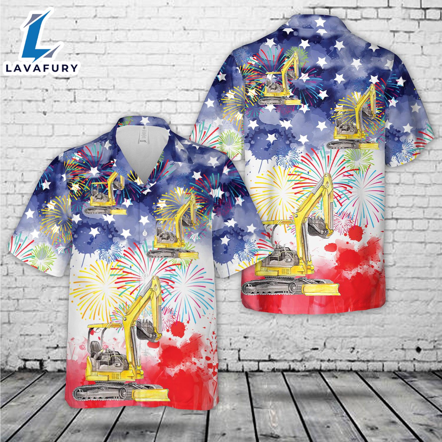 Excavator Backhoe construction, 4th Of July Hawaiian Shirt 4TH Of July Experience the essence of island life with the Hawaiian Shirt, a vibrant blend of style and comfort. This shirt features lively, tropical prints that evoke the carefree spirit of a beach getaway. Crafted from lightweight, breathable fabric, it offers a relaxed fit and exceptional comfort, perfect for warm weather. The classic button-down design and short sleeves provide a laid-back yet polished look, making it ideal for casual outings, beach days, or summer gatherings. Infuse your wardrobe with a touch of tropical flair and effortless charm with this essential Hawaiian Shirt.