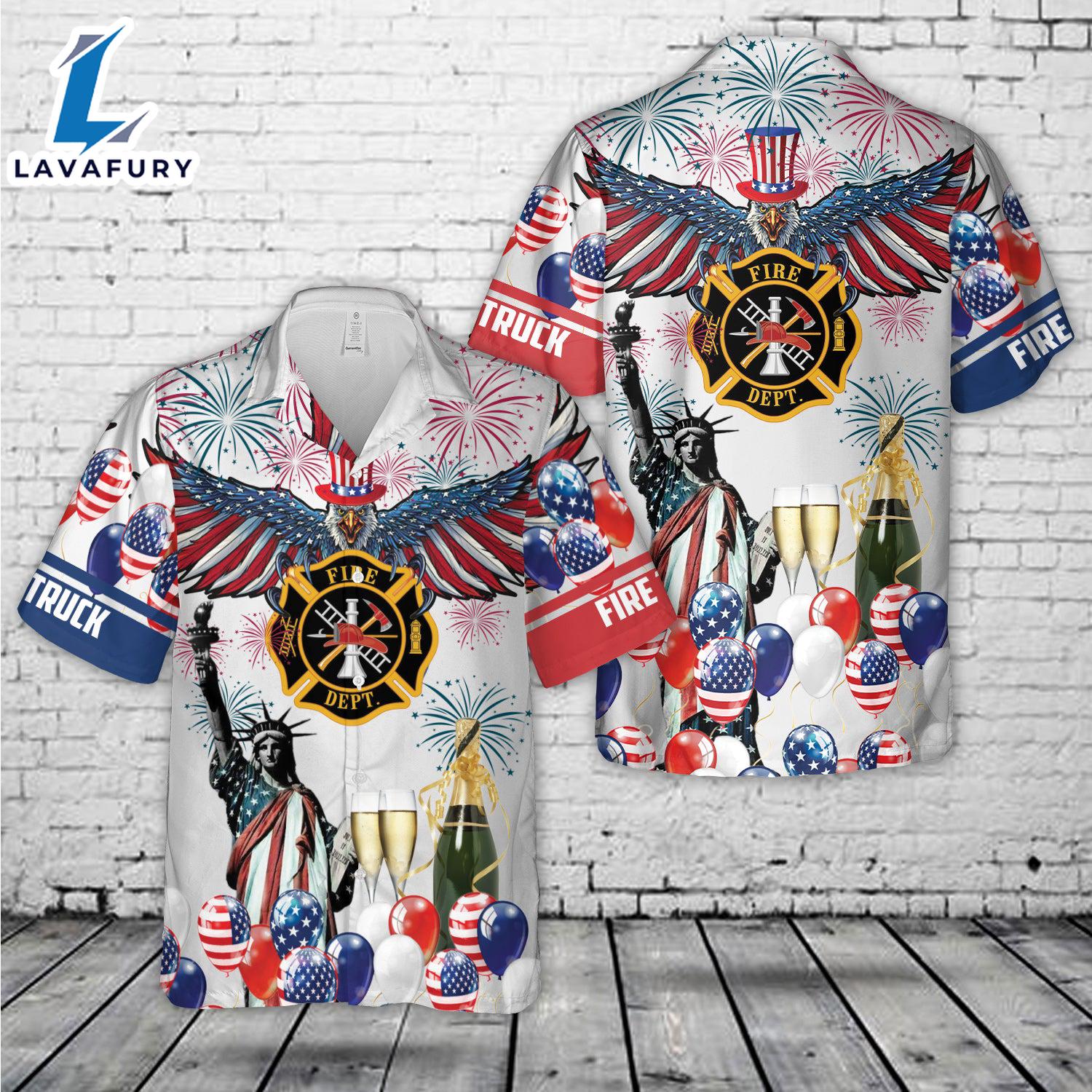 Fire Truck, 4th Of July Eagle Patriotic Hawaiian Shirt Gift Summer