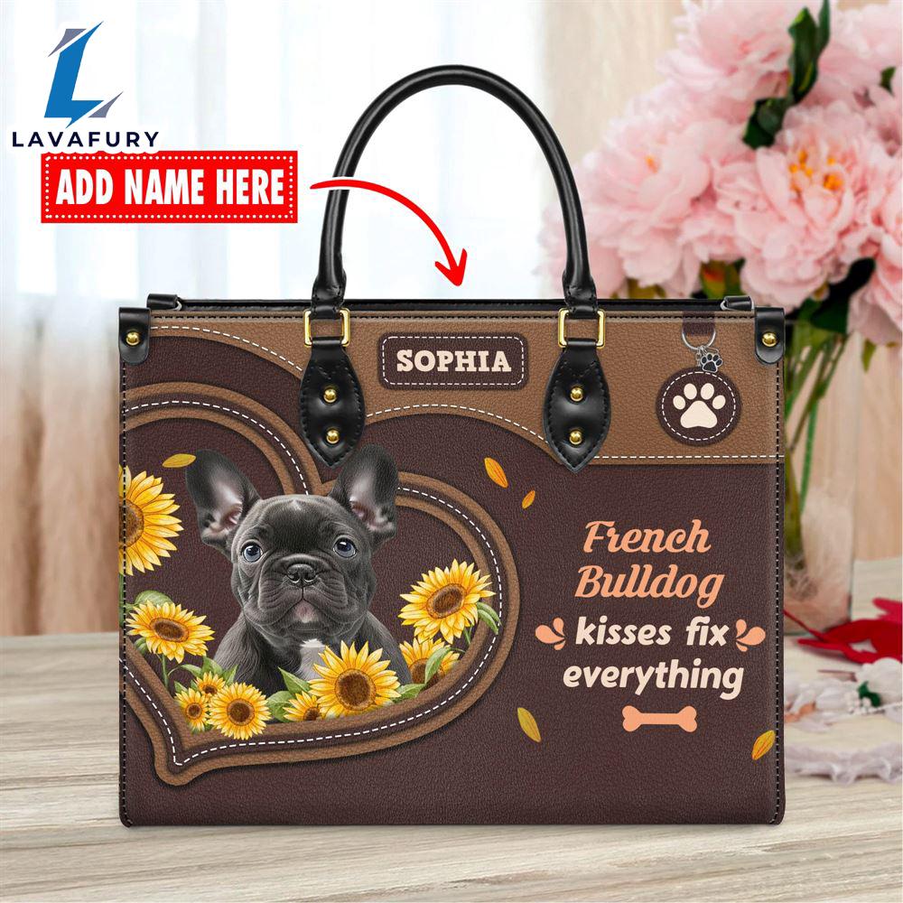 French Bull Dog Kisses Fix Everything Leather Handbag Love Your Pet