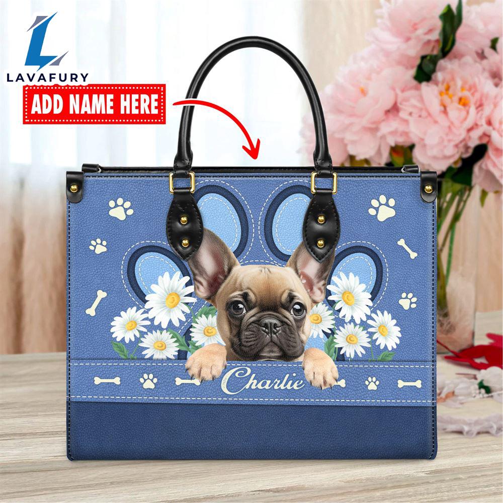 French Bull Dog Lover Leather Bag With Daisy Flowers Love Your Pet