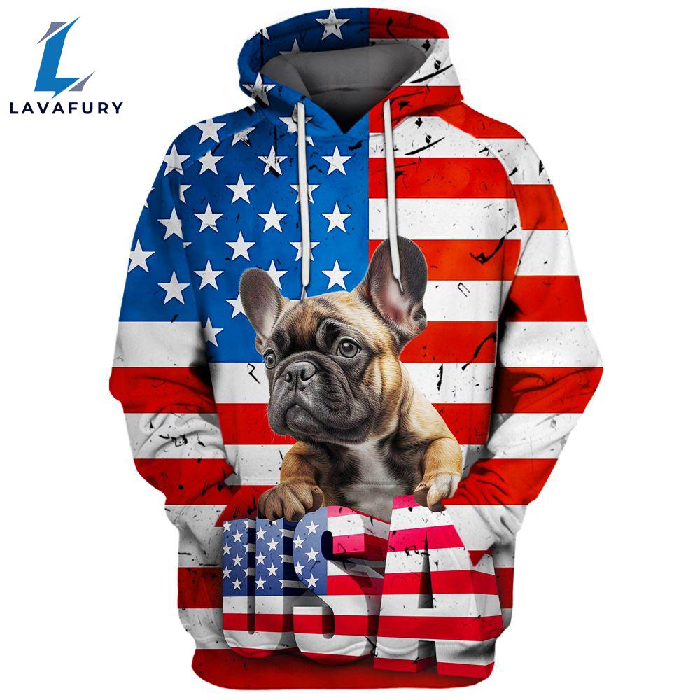 French Bulldog 2 3D Face Graphic Premium America Flag Hoodie For Lover Dogs
