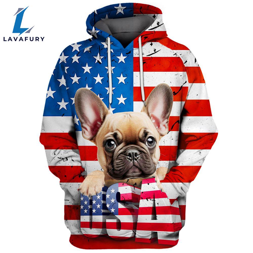 Product details: French Bulldog 4 3D Face Graphic Premium America Flag Hoodie For Lover Dogs