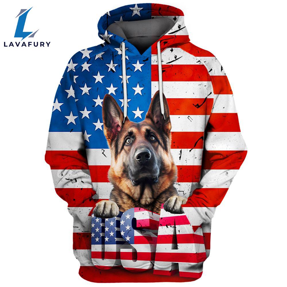 Product details: German Shepherd Dog 2 3D Face Graphic Premium America Flag Hoodie For Lover Dogs
