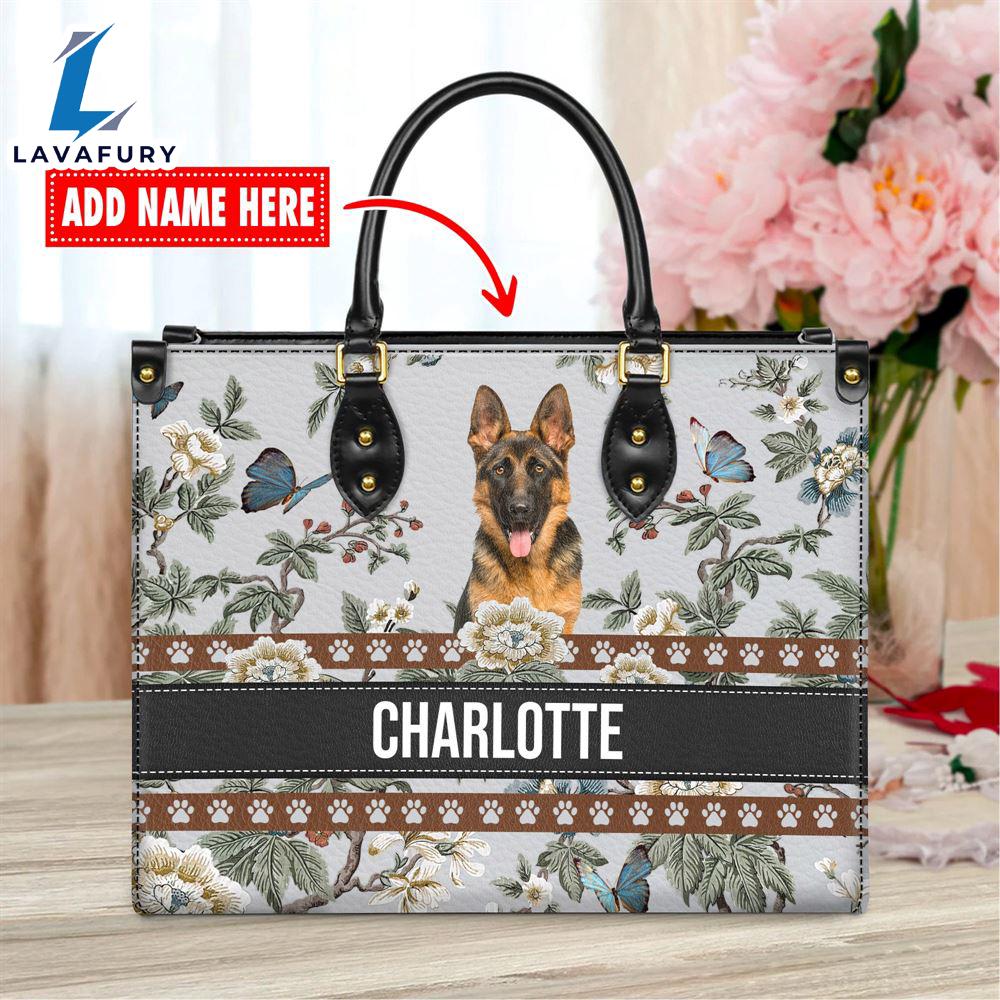 Product Details German Shepherd Dog Bior Leather Handbag With Flowers And Butterfly Love Your Pet